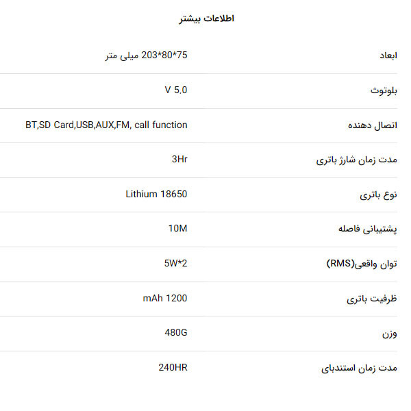 اگر علاقه مند به موسیقی هستید و در موقعیت های مختلف اعم از سفر _ مهمانی و دورهمی های دوستانه _ ورزش و پیاده روی و… به موسیقی گوش می دهید، داشتن اسپیکری که سبک و قابل حمل و در عین حال باکیفیت باشد برای شما مزیت به حساب می آید. اسپیکرهای پرتابل به دلیل اتصال و حمل و نقل راحت در هر موقعیت مکانی ای برای دوست داران و علاقه مندان به موسیقی، کاربرد دارند. اسپیکر تسکو مدل TS 23004 در ابعاد 75x80x203 میلی متر با وزن 480 گرم در رنگ مشکی ارائه شده است. این دستگاه امکان اتصال از طریق بلوتوث با آخرین نسخه ی حال حاضر (ورژن5.0) را برای شما فراهم کرده که دارای قابلیت پشتیبانی تا مسافت 10 متری است. از دیگر امکانات اسپیکر تسکو مدل TS 23004 میتوان به مجهز بودن آن به درگاه های پورت USB FLASH_ MICRO SD CARD_AUX ،قابلیت پاسخگویی به تماس های ورودی خود (CALL FUNCTION) و رادیو FM اشاره کرد. اسپیکر مدل TS 23004 دارای یک باتری لیتیومی 1200 میلی آمپری است که در مدت زمان 3 ساعت بطور کامل شارژ میشود.